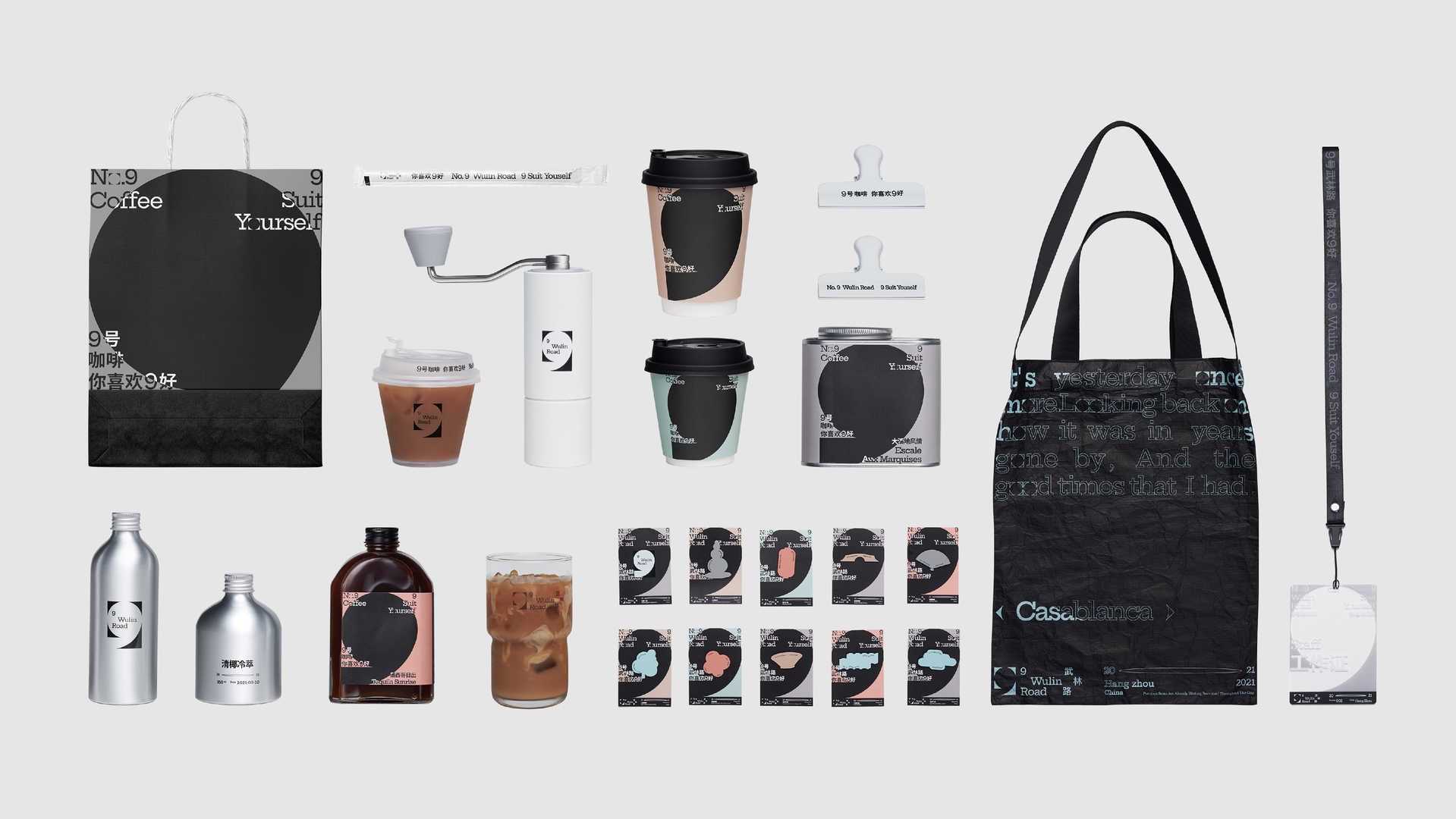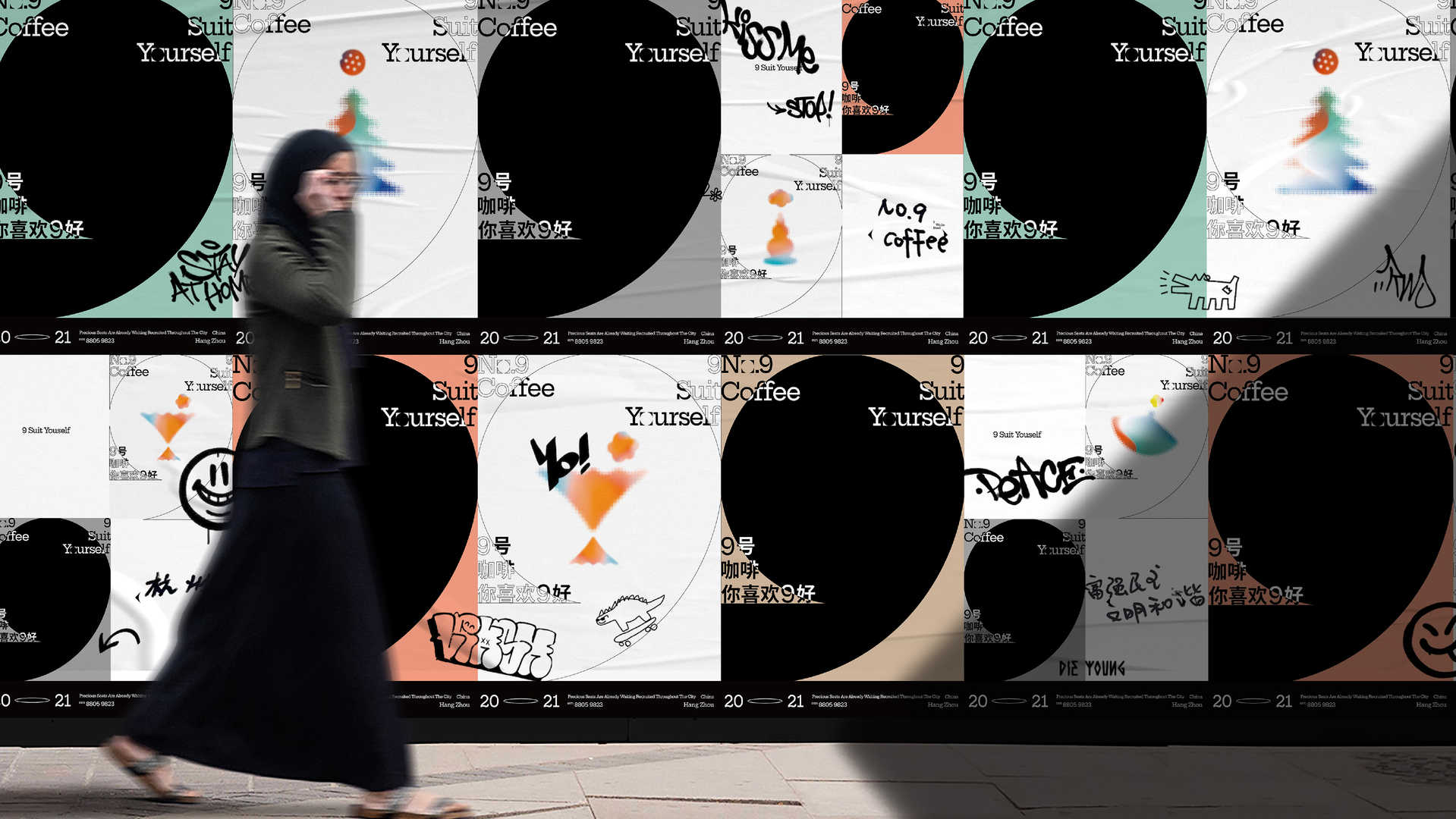 With the rise of Gen Z and experiential retail, the main audience for the design are the young, trendy people who are now the most enthusiastic consumers. That’s why we are creating a youthful image for the coffeehouse.The coffeehouse is located at what is known as the Wake Town, or “No. 9 Wulin Road” in literal translation, so we borrowed the most recognizable symbol in the name – the number “9” – as our starting point. This project happens to enjoy the privilege of being on the edge of China’s most beautiful paradise – the West Lake. In a moment of leisurely elation under a bright moon shining on the surface of the lake, we were blessed with an inspiration: an interesting relationship between the circle and the square is found in the number “9”, and a very direct and ingenious design for the LOGO’s core shape is created, featuring a minimalist design sense and high recognizability. The graphics of the “9” shape looks like a cup of coffee on a tray in an overhead view. From the same concept we later developed the brand slogan “It’s N9ce If You Like It”, and the symbol of “9” was consistently used in the subsequent extension design of the brand image. We experimented with combining various shapes of different materials into abstract representations of human figures, drinks, etc., that are used on a series posters and derivative works, on which we leave blank spaces for customer to write their messages. This is why we want to do a very direct LOGO design, which in subsequent extension can offer room for interesting interactions with consumers, who can fill in the blank with any statements they like, which is a perfect combo with the slogan “It’s N9ce If You Like It”.
